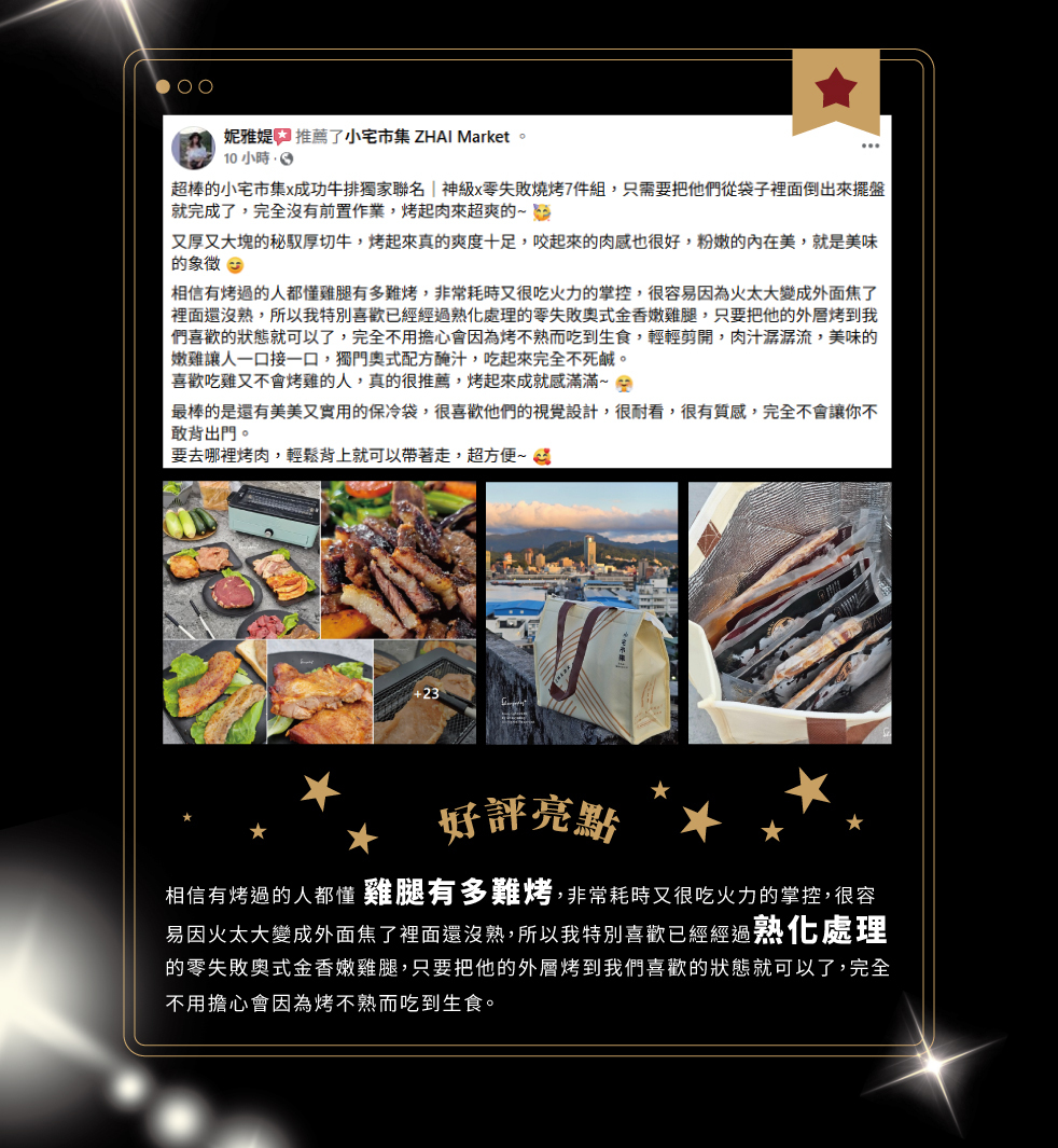 一包在手,美味無憂!不論是在家快速晚餐、露營炊事、野餐料理還是朋友聚會,小宅市集「零失敗奧式金香嫩雞」都是你的萬用燒肉首選!趕快囤一包,讓日常變成小小儀式感🌟