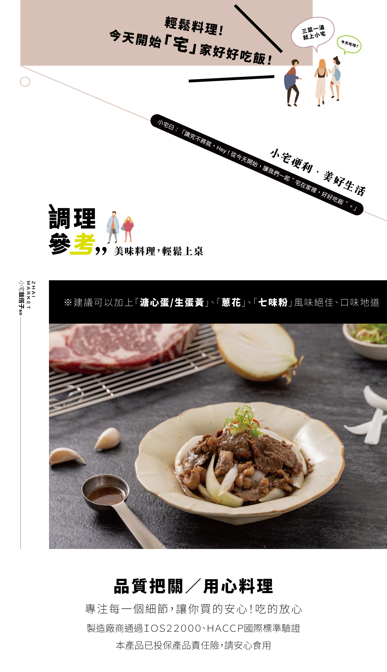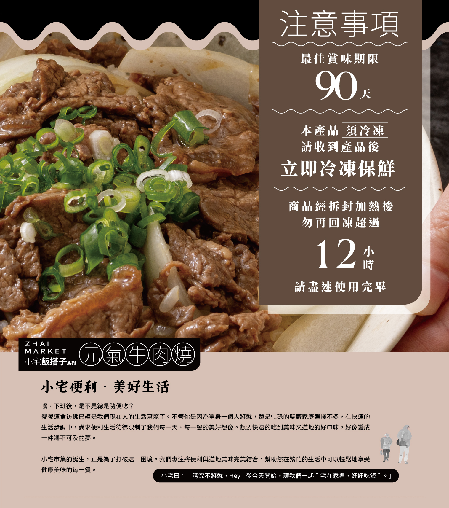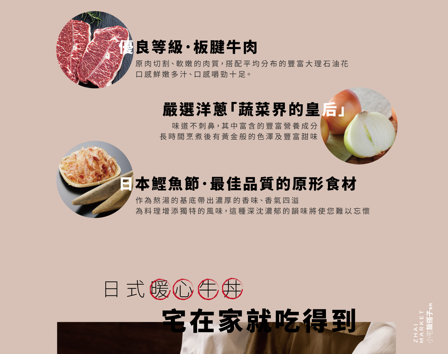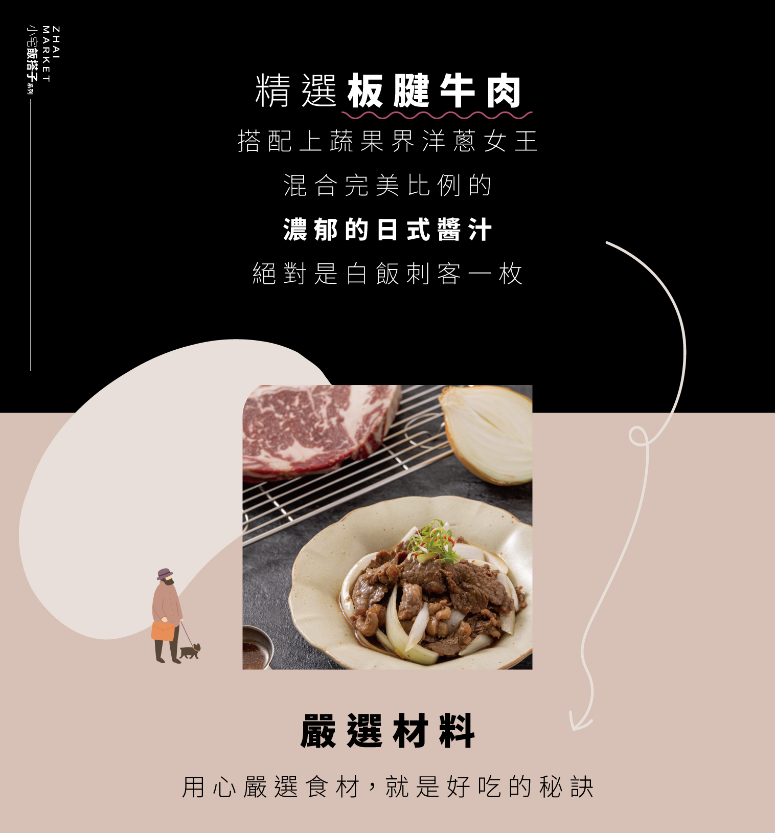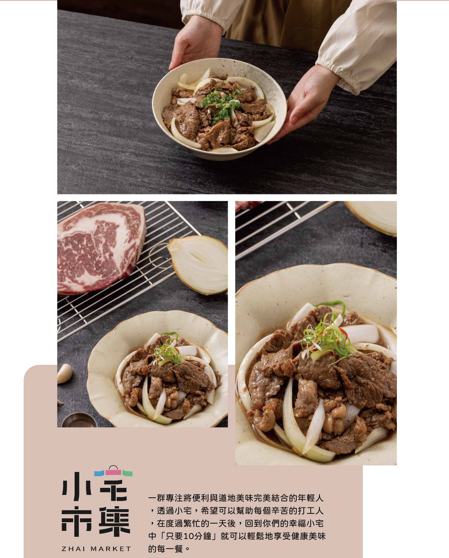 使用優良等級肋眼牛肉!取自靠近背脊的部位,豐富且均勻的大理石的油花,肉質Q彈、嚼勁十足!完美比例且濃郁的日式醬汁絕對是日常的超級飯搭子。