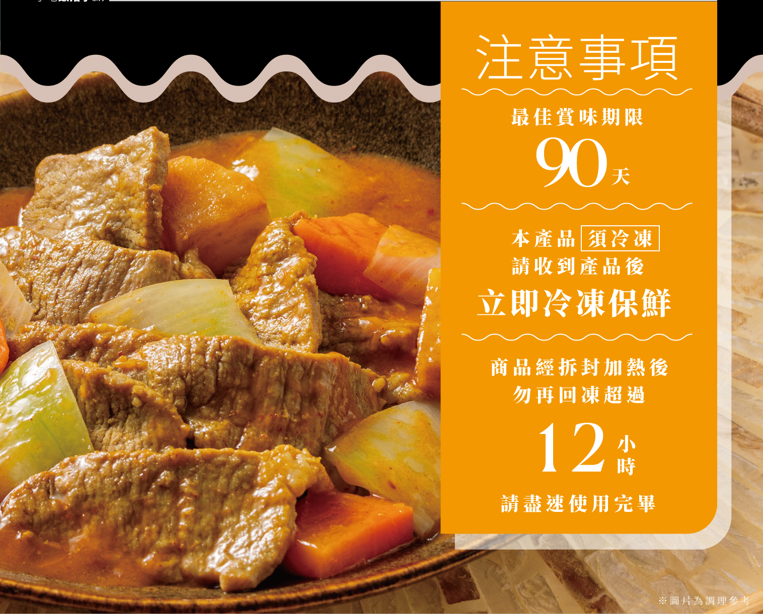 * 冷凍即食料理首選:冷凍真空包裝,鎖住鮮味與營養,最佳賞味90天,保存可達12個月